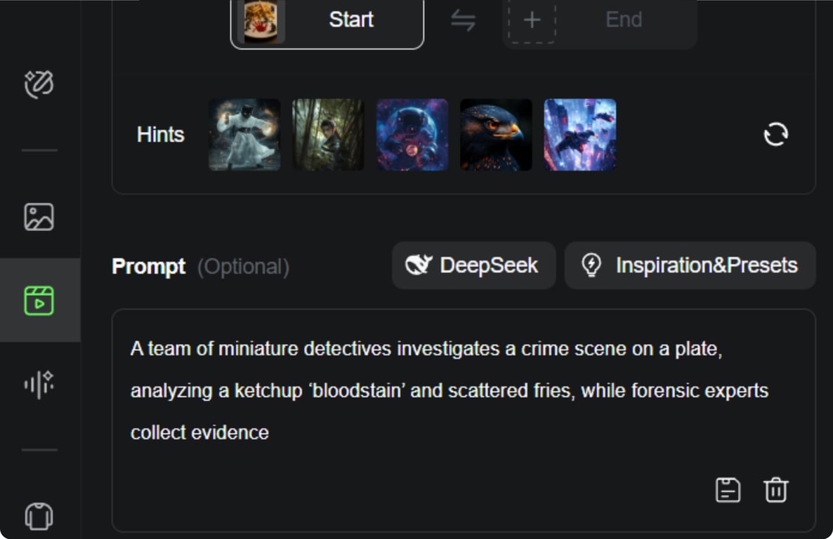 Just like with image generation, Kling AI requires a text prompt to know how to animate the scene. However, the prompt for animation is usually simpler and focused on describing the action or movement happening with the miniature subjects in the scene.