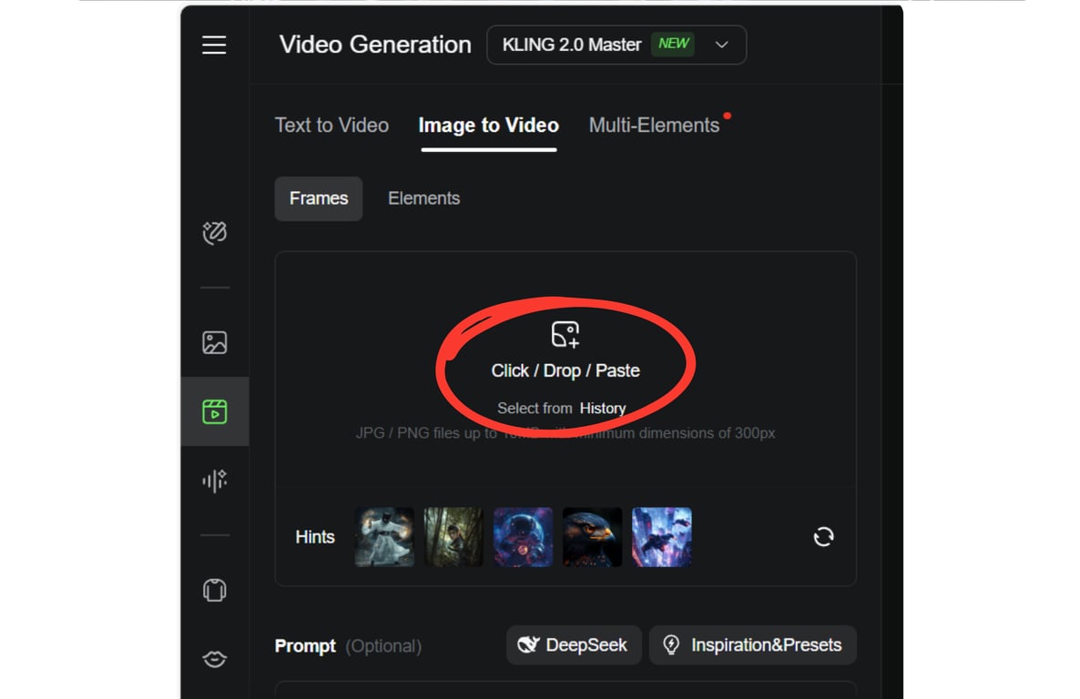 OPEN KLING AI AND START A NEW VIDEO PROJECT