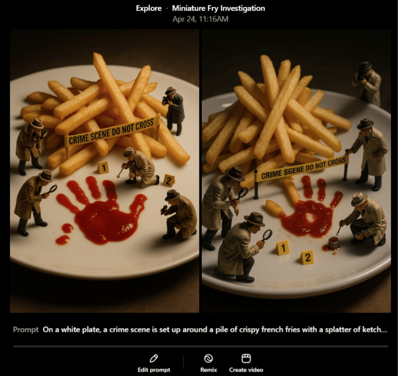 For the french fries crime scene, an animation prompt might be:
